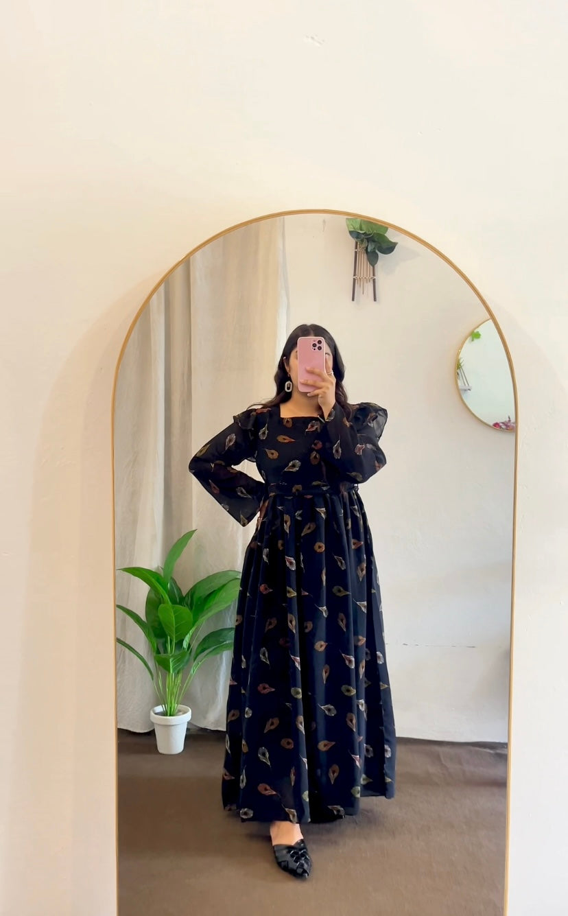 KALISTA FLORAL AQUARE NECK MAXI - CHIFFON DRESS ( INNER ATTACHED )